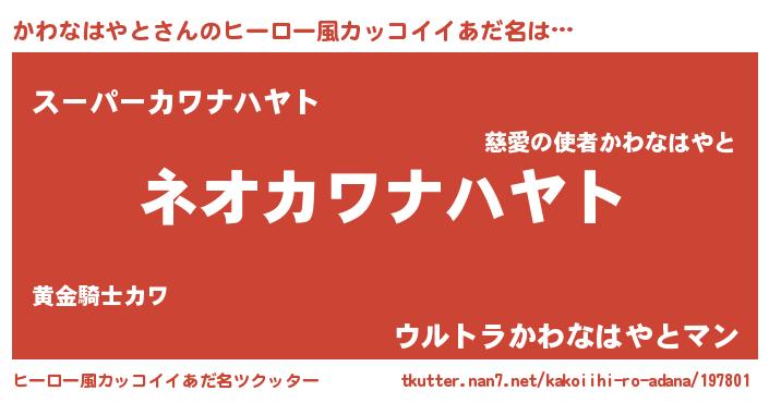 | ヘコむあだ名 | 『かわなはやと(震え声)』『かわにゅー』 |