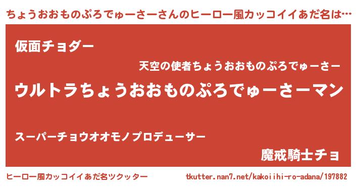 | 意味不明あだ名 | 『ちょうおおものぷろでゅーさーフォーエバー』 |