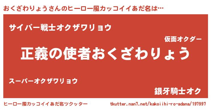 | 男性向けラノベタイトル風あだ名 | 『おまえをオタクにしてやるから、俺をおくざわりょうにしてくれ! 』 |