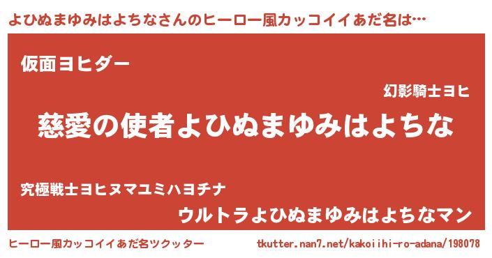 | 女子向けラノベタイトル風あだ名 | 『よひぬまゆみはよちな恋絵巻』 |