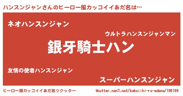 | ポケモン風あだ名 | 『ヒハンスンジャン』『ゼニハン』 |