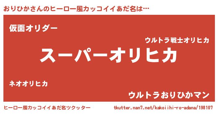 | 意味不明あだ名 | 『なめこ科おりひか属』『自称おりひか』 |