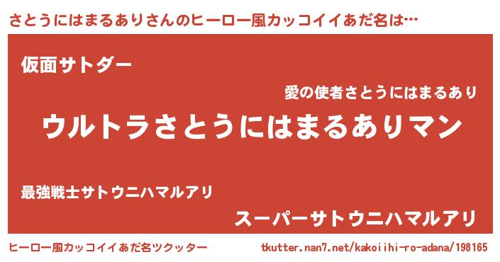| ファンタジー風あだ名 | 『エターナルサトウニハマルアリー』 |