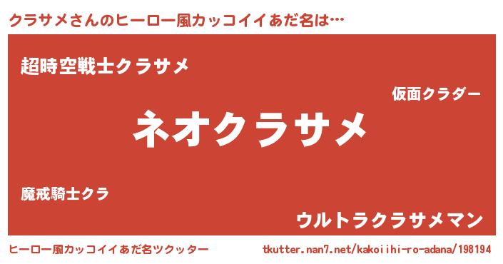 | 男性向けラノベタイトル風あだ名 | 『クラサメという概念が存在しない退屈な世界 』 |