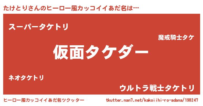 | 胡散臭い通販商品みたいなあだ名 | 『あなたにだけ特別に提供する限定10本のレアな日本酒…その名も「たけとり」』 |