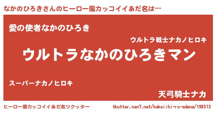 | 男性向けラノベタイトル風あだ名 | 『なかのひろき~年齢イコール彼女いない歴の魔法使い~』 |