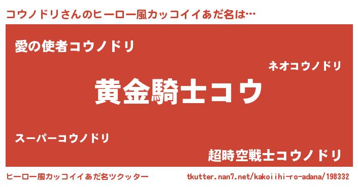 | 意味不明あだ名 | 『とにかく怪しいコウノドリ』 |