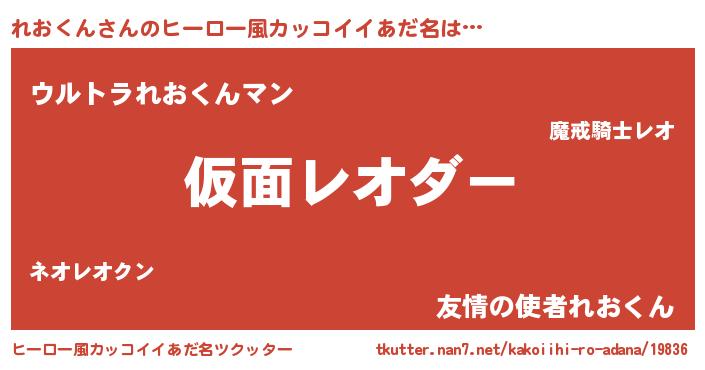 | 男性向けラノベタイトル風あだ名 | 『この素晴らしい世界にれおくんを!』 |