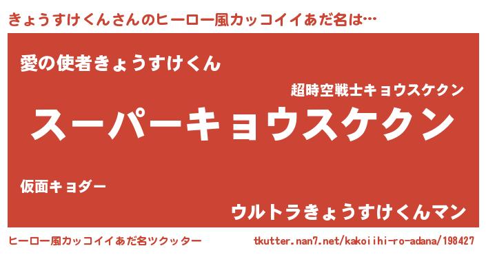 | 男性向けラノベタイトル風あだ名 | 『はたらくきょうすけくんさま!』 |