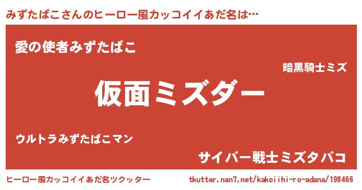 | 意味不明あだ名 | 『住所不定無職みずたばこ(95歳)』 |