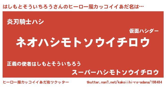| 男性向けラノベタイトル風あだ名 | 『はしもとそういちろうに滅ぼされるだけの簡単なお仕事です』 |