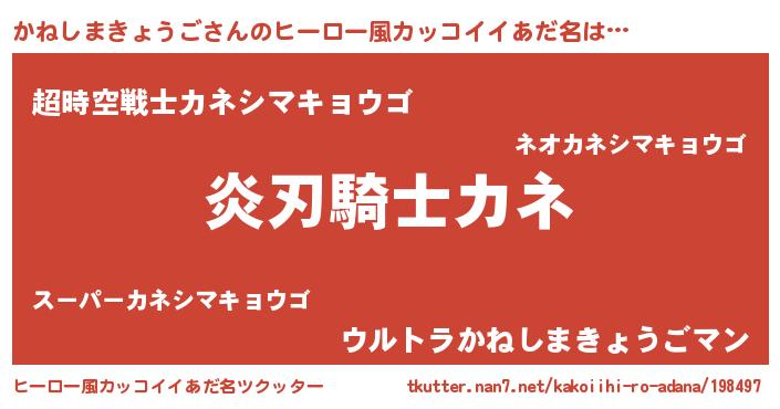| 男性向けラノベタイトル風あだ名 | 『かねしまきょうごの嫁は女の子じゃないと思った?』 |