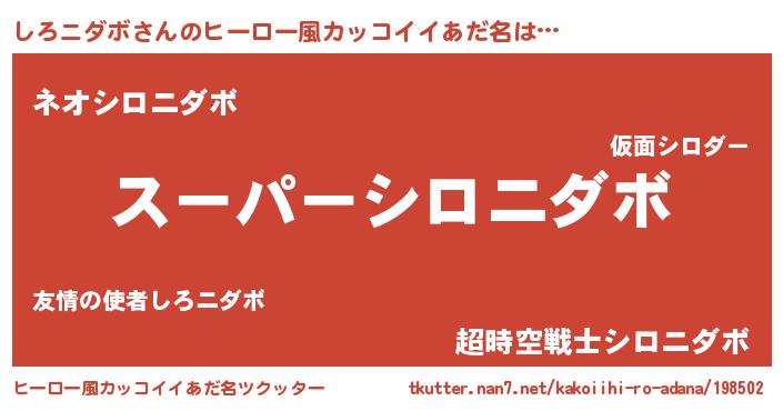 | 男性向けラノベタイトル風あだ名 | 『しろニダボの憂鬱』 |