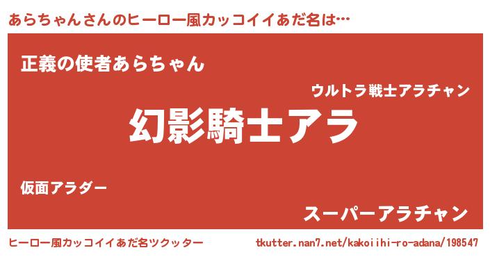 | ファンタジー風あだ名 | 『カークアララー』『ファントムアラス』 |