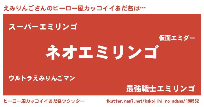 | 女子向けラノベタイトル風あだ名 | 『異世界で失敗しない100のえみりんご』 |