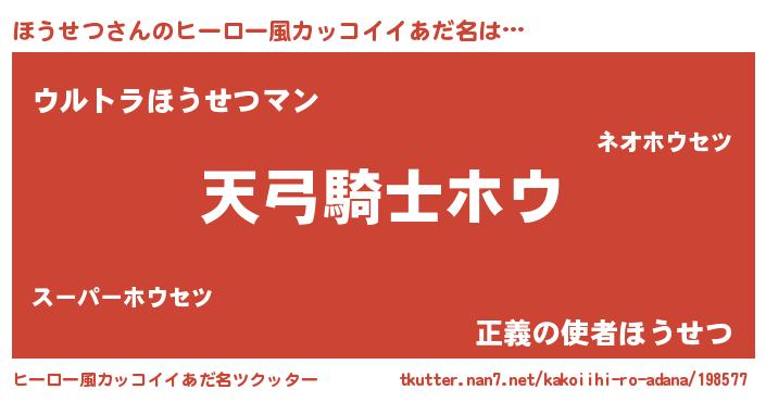 | 男性向けラノベタイトル風あだ名 | 『ほうせつ~年齢イコール彼女いない歴の魔法使い~』 |
