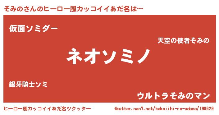 | 男性向けラノベタイトル風あだ名 | 『そみのという概念が存在しない退屈な世界 』 |