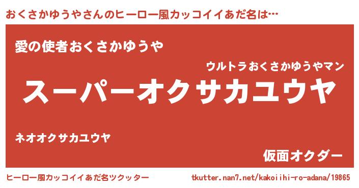 | 男性向けラノベタイトル風あだ名 | 『おくさかゆうやに滅ぼされるだけの簡単なお仕事です』 |