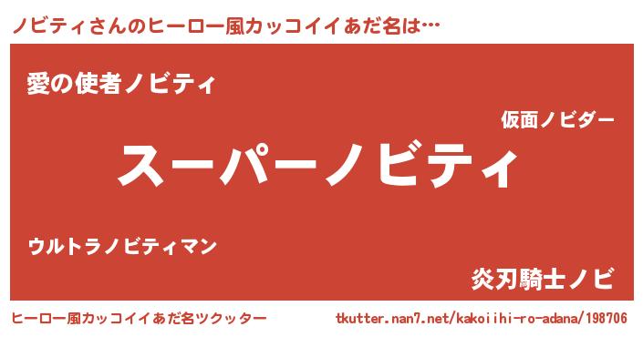 | 男性向けラノベタイトル風あだ名 | 『ノビティアートオンライン』 |