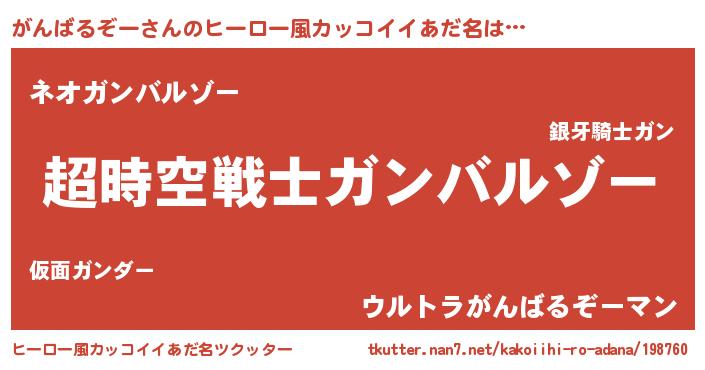 | 男性向けラノベタイトル風あだ名 | 『ガンバルゾースレイヤー』 |