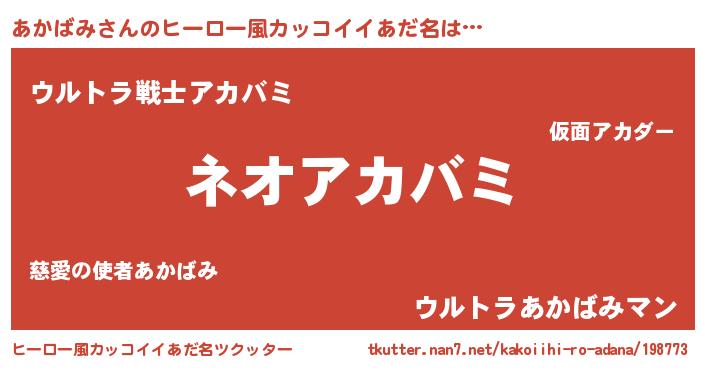 | 意味不明あだ名 | 『永久保存あかばみ』『自称あかばみ』 |
