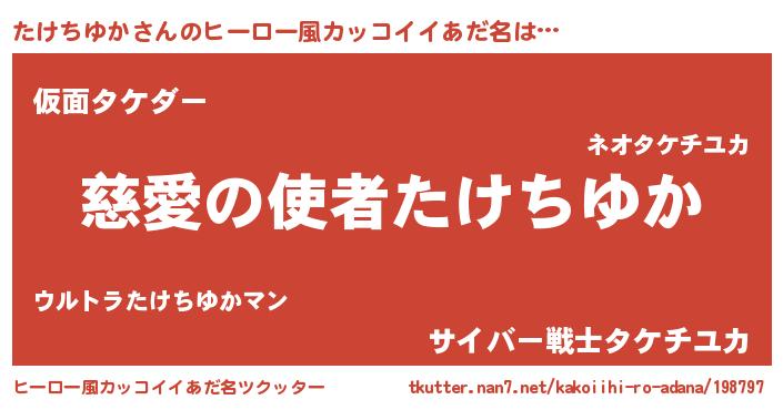 | ヘコむあだ名 | 『たけちゆか(苦笑)』『酢こんぶ』 |