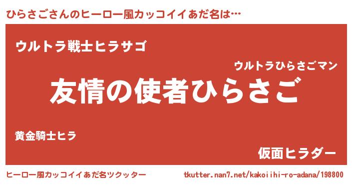 | 男性向けラノベタイトル風あだ名 | 『おまえをオタクにしてやるから、俺をひらさごにしてくれ! 』 |