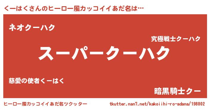| 胡散臭い通販商品みたいなあだ名 | 『必ず成功する霊験あらたかなお札…その名も「くーはく」』 |