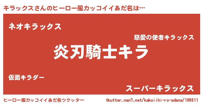 | 男性向けラノベタイトル風あだ名 | 『キラックスの嫁は女の子じゃないと思った?』 |