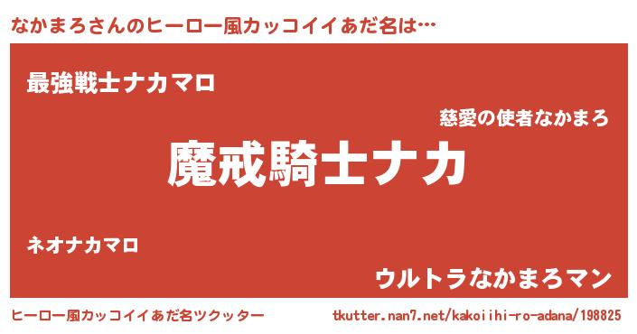 | 男性向けラノベタイトル風あだ名 | 『ナカマロスレイヤー』 |