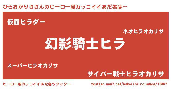 | 男性向けラノベタイトル風あだ名 | 『ひらおかりさの嫁は女の子じゃないと思った?』 |
