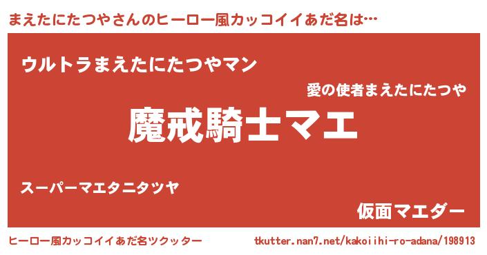 | ポケモン風あだ名 | 『マエキング』『ヒマエタニタツヤ』 |