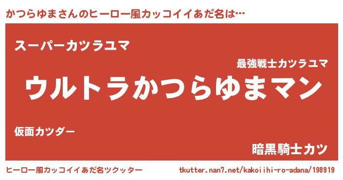 | 男性向けラノベタイトル風あだ名 | 『転生したらかつらゆまだった件』 |