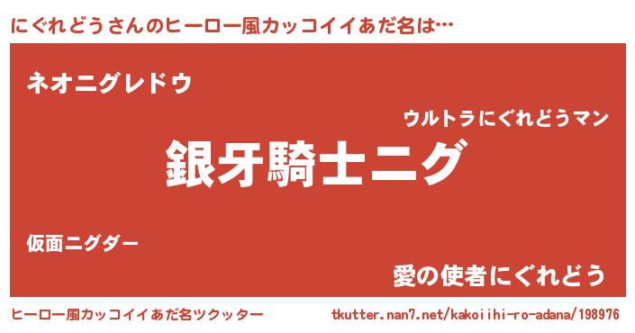 | ポケモン風あだ名 | 『ヒニグレドウ』『ゼニニグ』 |