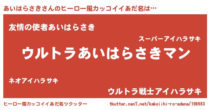 | 男性向けラノベタイトル風あだ名 | 『うちのあいはらさきが世界を掌握している!』 |