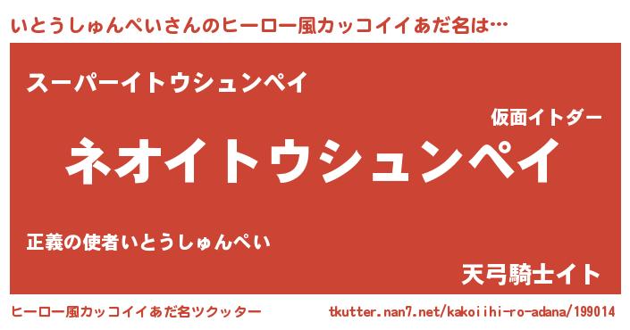 | 胡散臭い通販商品みたいなあだ名 | 『絶対に幸福をもたらす招き猫…その名も「いとうしゅんぺい」』 |