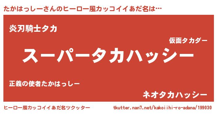 | 男性向けラノベタイトル風あだ名 | 『タカハッシーアートオンライン』 |