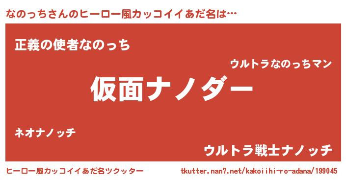 | 男性向けラノベタイトル風あだ名 | 『この素晴らしい世界になのっちを!』 |
