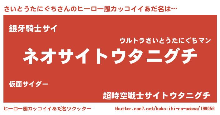 | 伝説のあだ名 | 『古より伝わる吟遊詩人さいとうたにぐち』 |
