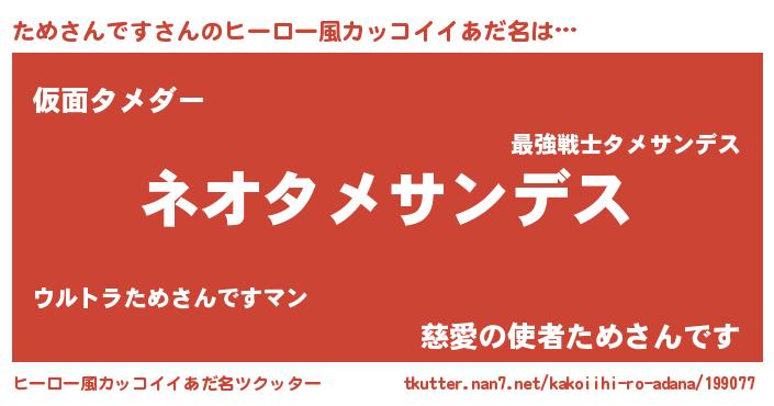 | 男性向けラノベタイトル風あだ名 | 『ためさんですという概念が存在しない退屈な世界 』 |