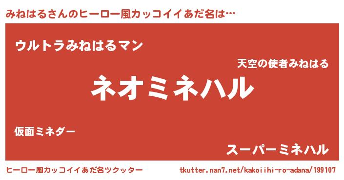 | 男性向けラノベタイトル風あだ名 | 『みねはるという概念が存在しない退屈な世界 』 |