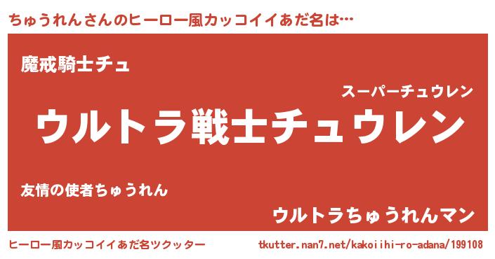 | 女子向けラノベタイトル風あだ名 | 『ちゅうれんなんてお断りですっ。』 |