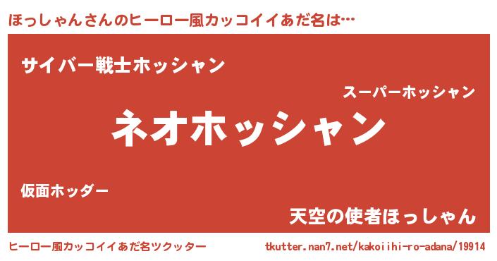 | 女子向けラノベタイトル風あだ名 | 『異世界で失敗しない100のほっしゃん』 |