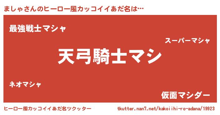 | 男性向けラノベタイトル風あだ名 | 『ましゃ~年齢イコール彼女いない歴の魔法使い~』 |