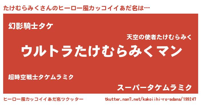 | 伝説のあだ名 | 『秘められし忍者たけむらみく』 |