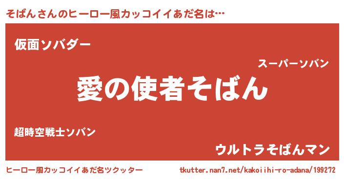 | 男性向けラノベタイトル風あだ名 | 『転生したらそばんだった件』 |