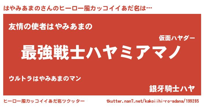 | 意味不明あだ名 | 『自称はやみあまの』 |