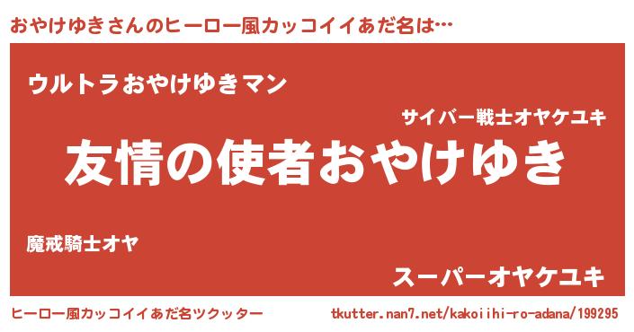 | 男性向けラノベタイトル風あだ名 | 『オヤケユキスレイヤー』 |