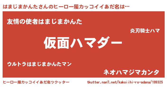 | 男性向けラノベタイトル風あだ名 | 『ハマジマカンタスレイヤー』 |