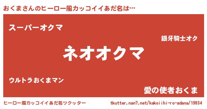 | 胡散臭い通販商品みたいなあだ名 | 『来世でも幸せになれる水素水…その名も「おくま」』 |